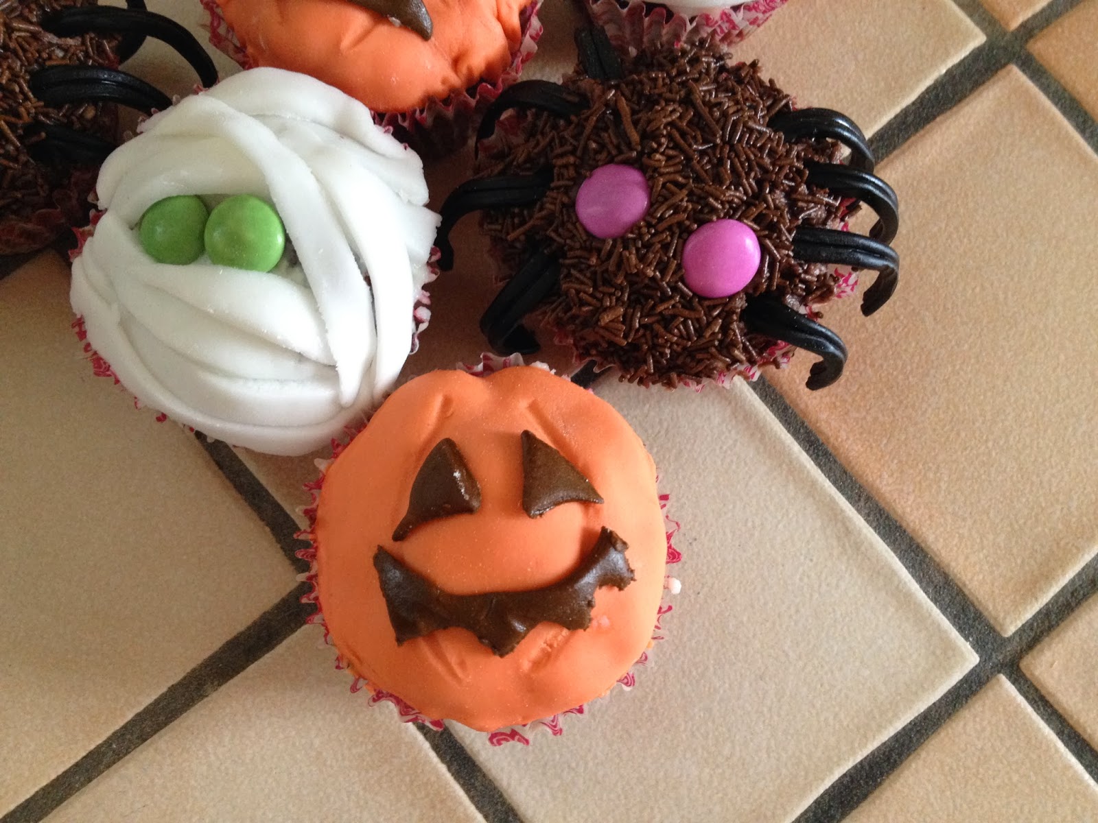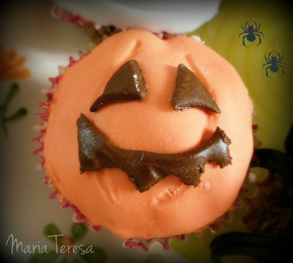 spalmare con questo composto la superficie dei  muffins che si trasformeranno in  mummia e zucca; per i ragnetti aggiungere un