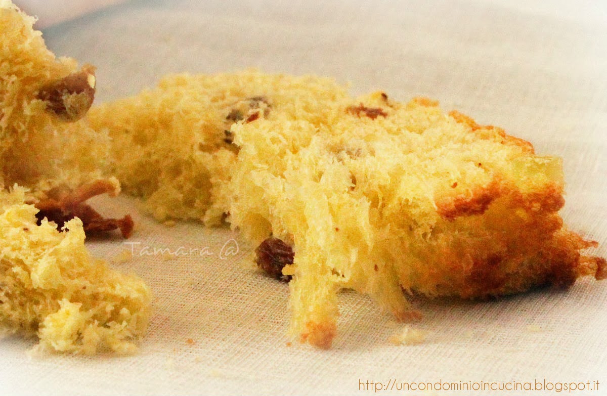 – Impastate alla minima velocità e per breve tempo, giusto il necessario per distribuire canditi e uvetta nell’impasto.