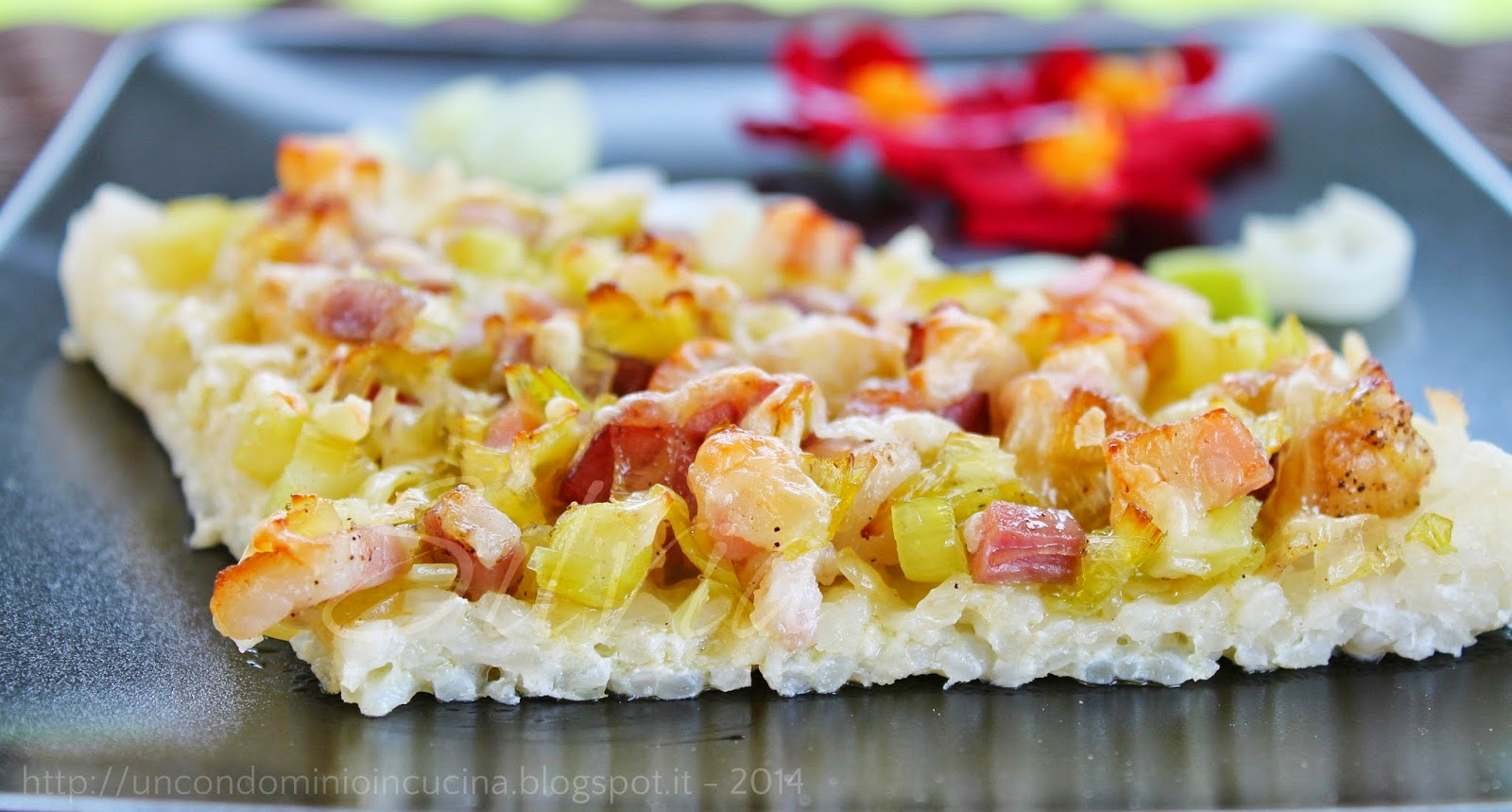 Nel frattempo affettare i porri e saltarli in padella per 7/8 minuti con un filo d’olio e il bacon precedentemente tagliato a pezzetti. Aggiustare di sale e pepe.