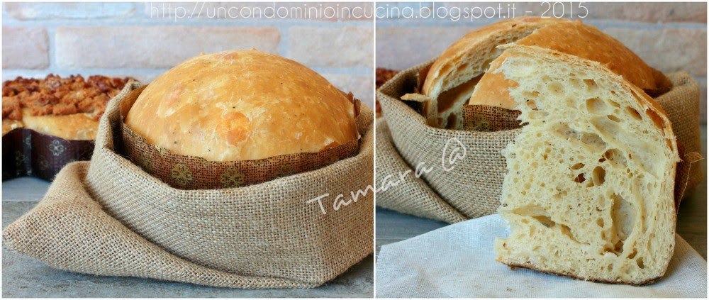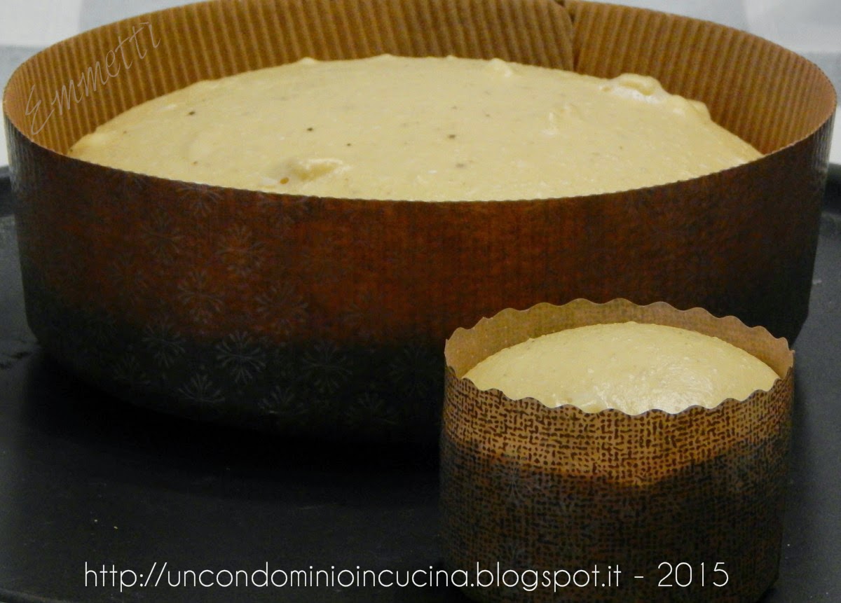 Mentre lei prevede un solo impasto con doppia lievitazione, io ho mantenuto il discorso dell’impasto diretto ma ho messo l’impasto in forma nel pirottino a distanza di circa un’ora e mezza dal termine della lavorazione.