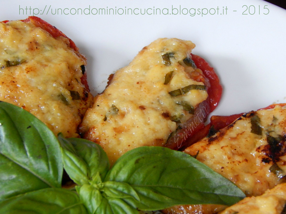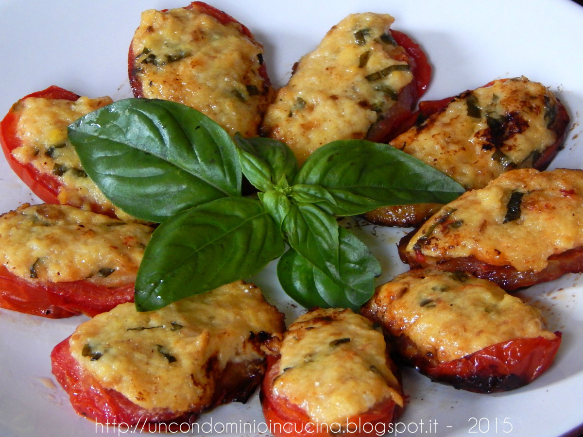 Ecco dunque la mia versione dei pomodori farciti (in realtà la ricetta l’ho rubata alla mi’ mamma tanti anni fa…) per un fresco e goloso contorno, appunto!
