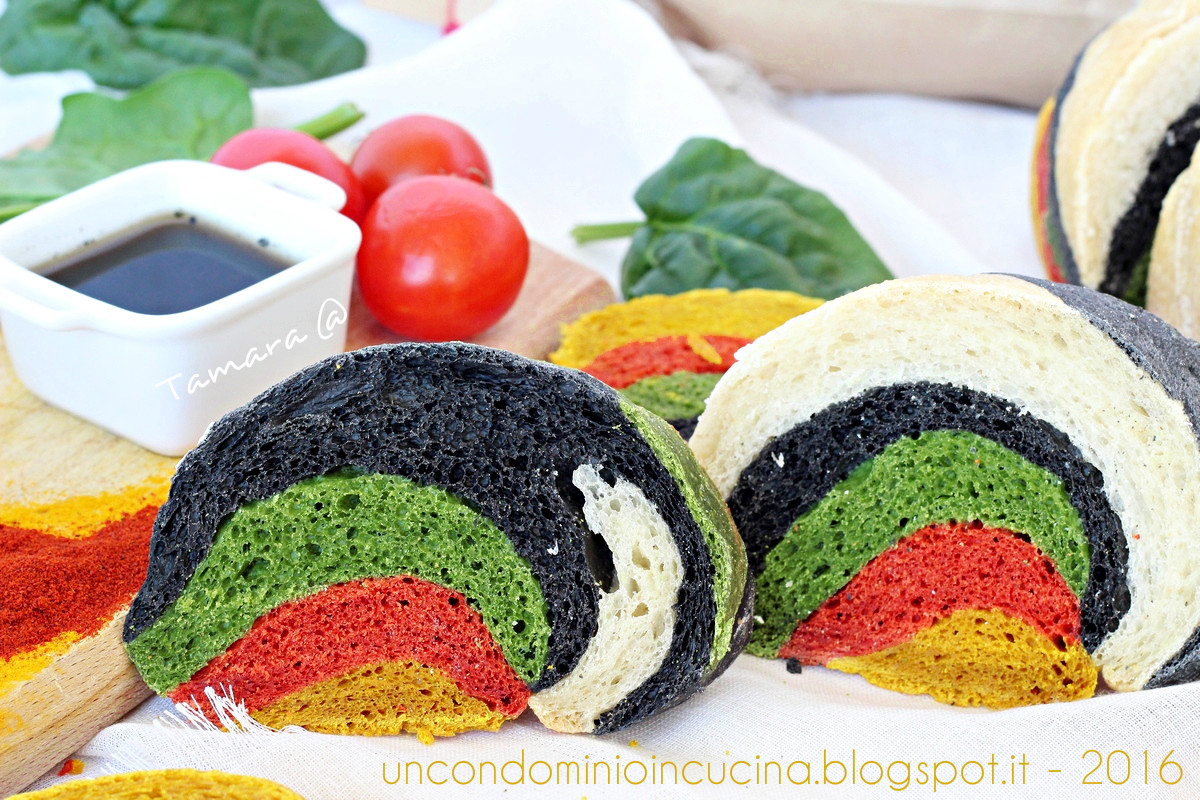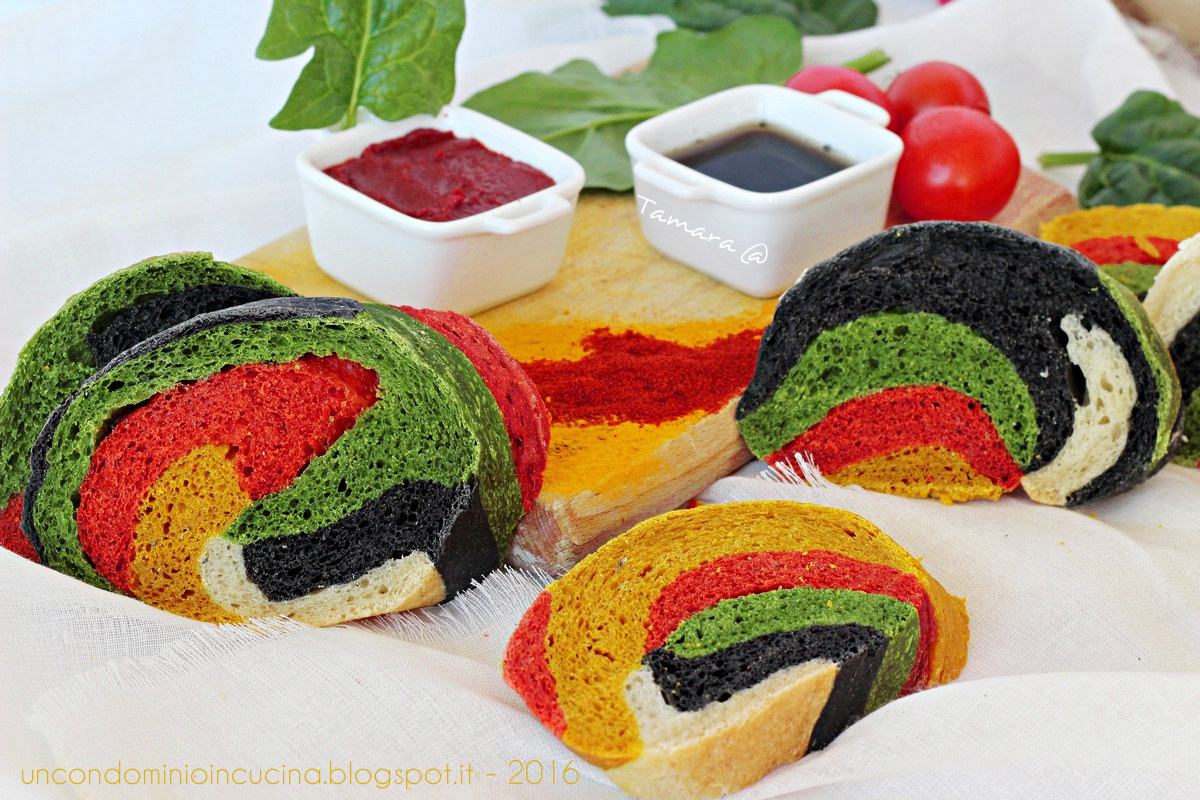 Irresistibile! l’ho provato ieri sera: i colori non sono venuti brillanti come i tuoi, ma il pane è bellissimo. È lievitato bene ed è anche profumato e buono. Stamattina ci abbiamo fatto colazione aggiungendoci appena 1 velo di burro. Meraviglioso. Grazie (ti invierei le foto ma non so dove farlo)