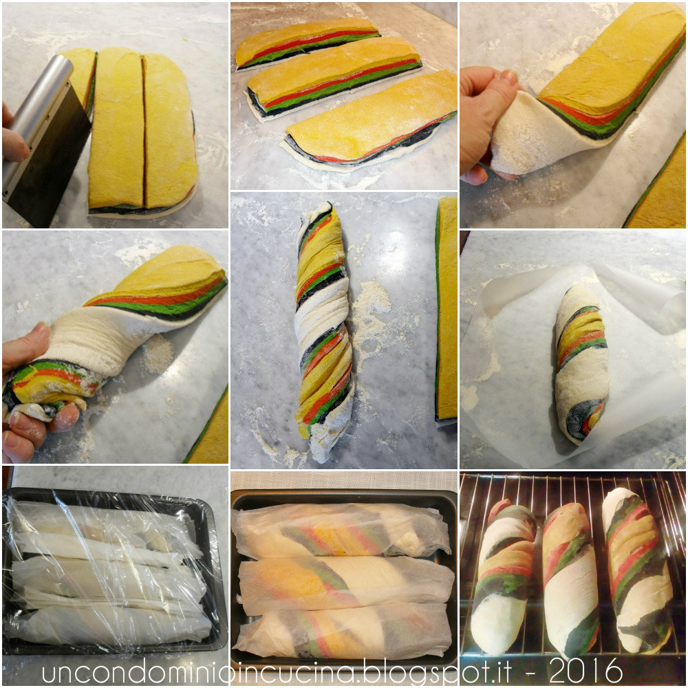 Pane bellissimo ma deve essere anche buonissimo. Complimenti! Ma per semplificare le cose non di potrebbe fare un unico impasto e poi dividerlo aggiungendo i colori?