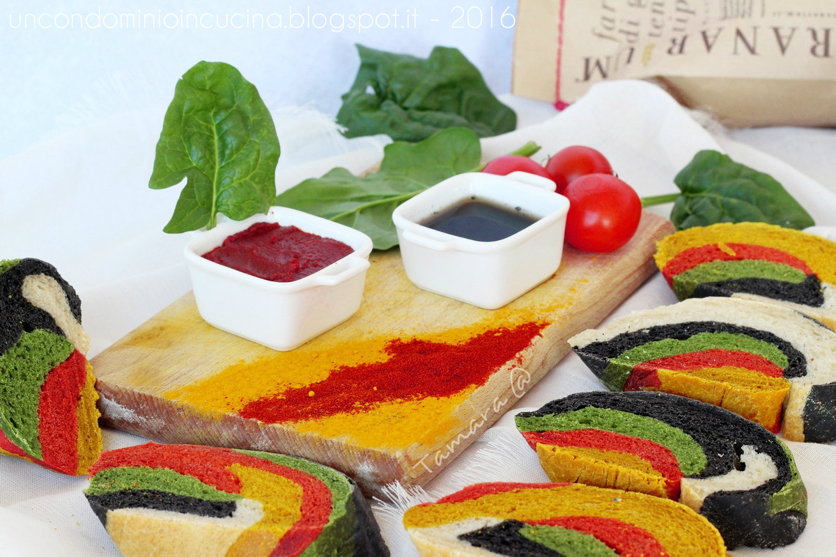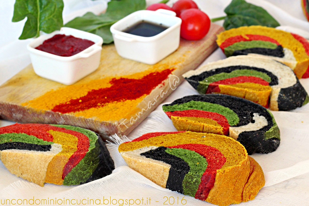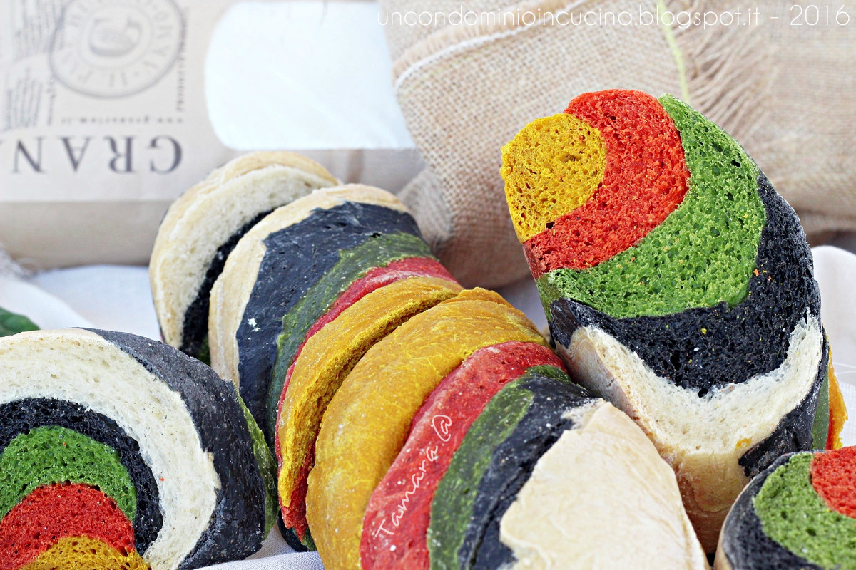 2. Irresistibile! l’ho provato ieri sera: i colori non sono venuti brillanti come i tuoi, ma il pane è bellissimo. È lievitato bene ed è anche profumato e buono. Stamattina ci abbiamo fatto colazione aggiungendoci appena 1 velo di burro. Meraviglioso. Grazie (ti invierei le foto ma non so dove farlo)