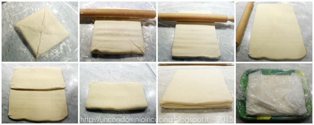 • Uno dei segreti per la preparazione degli impasti sfogliati è la cura nella stratificazione dell’impasto. Ogni piega deve essere ben serrata e non deve presentare buchi o strappi; in caso contrario, in cottura si creerebbe una via di fuga per i gas che provocherebbero irregolarità o grosse bolle nel prodotto. Perciò sigillare bene le giunture nell’inclusione e porre attenzione alla stesura quando si eseguono le pieghe.