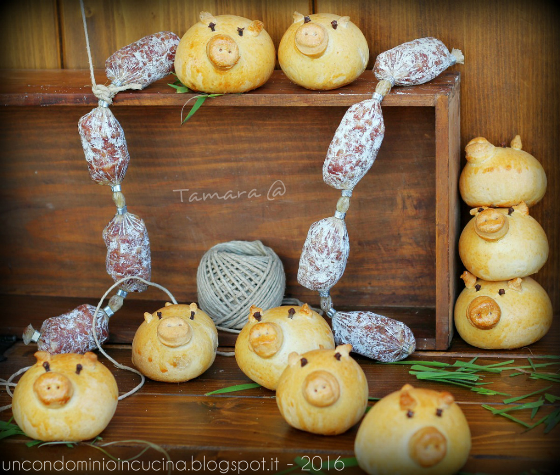 Oh, bisogna dire la verità, sti panini fanno proprio la loro porca figura su una tavola imbandita! Che sia un festin una festa, un apericena, uno spuntino, fanno troppa simpatia questi porcellini così tondi, rosa, ripieni, ciccioni, inconsapevoli!