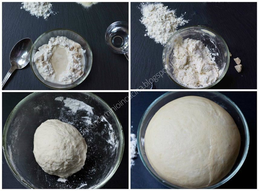 Sciogliere il lievito nell’acqua ed unire la farina precedentemente setacciata; lavorare l’impasto per non più di 3-4 minuti fino ad ottenere un impasto ancora grezzo, e dunque non liscio e setoso. Da qui ci sono due possibilità: