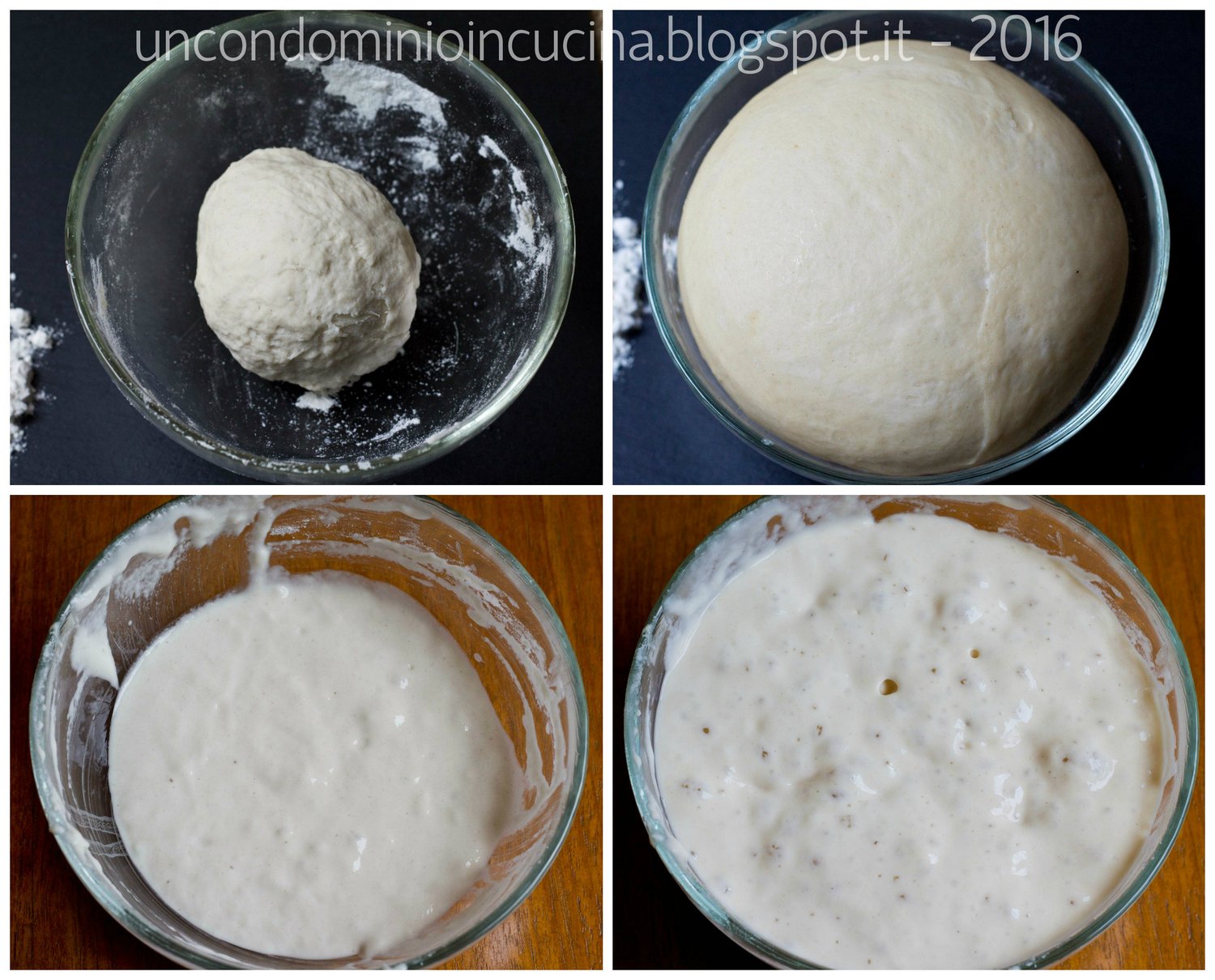 Sono due preimpasti che hanno caratteristiche diverse sia nelle percentuali degli ingredienti che nella modalità di fermentazione. Come premesso, le percentuali di lievito si riferiscono a LIEVITO DI BIRRA.