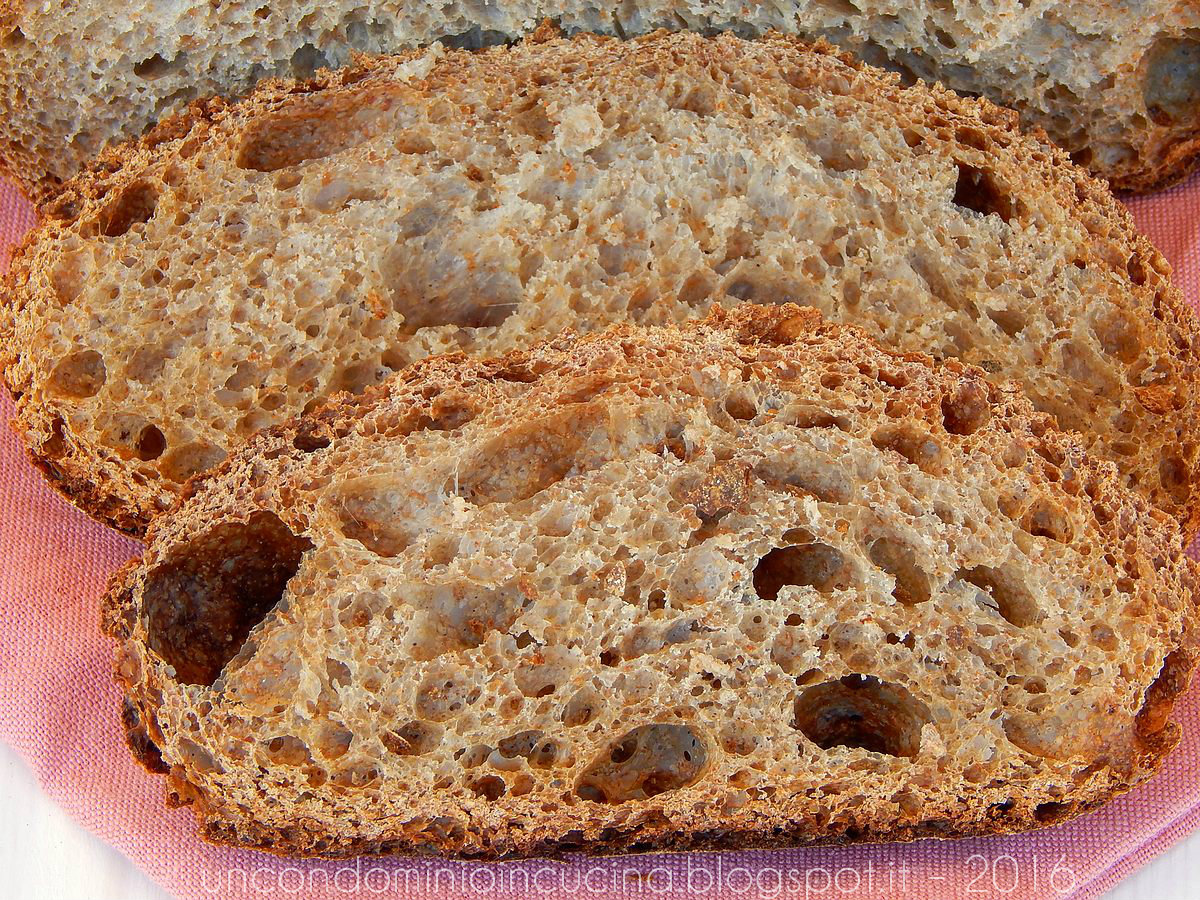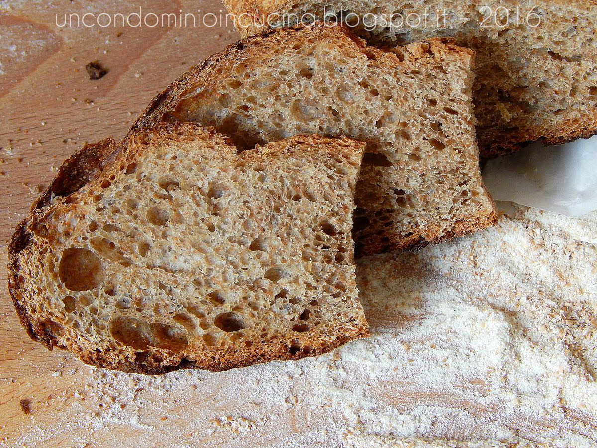 Ed è a quest’ultima che ho voluto dedicare tutta la mia attenzione, dal momento che un pane 100% integrale ancora non era uscito dal mio forno!