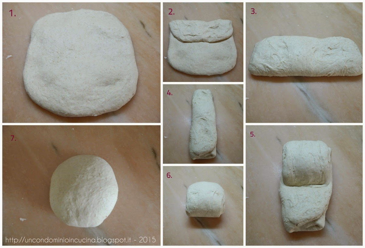 In questa fase la farina tenderà a sgretolarsi un pochino in quanto, come vedremo in seguito nell’approfondimento, il glutine farà fatica a sviluppare; quindi il consiglio è quello di continuare ad impastare nella ciotola attraverso delle semplici pieghe (un video esemplificativo qui).