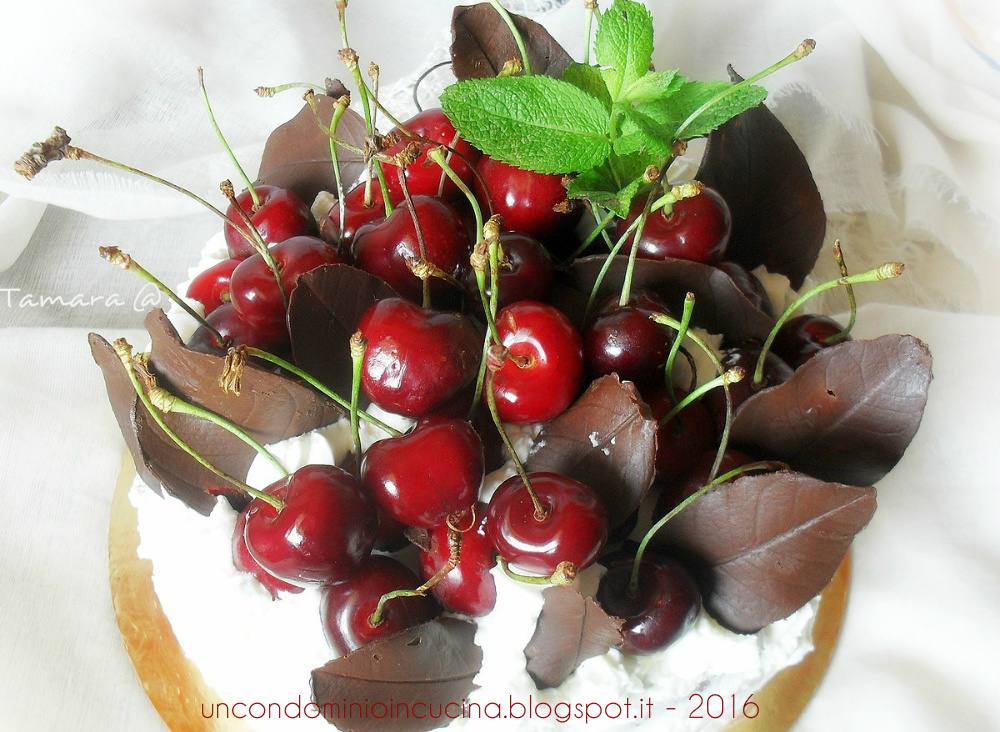 ❦ Farcire con la panna, le ciliegie rimaste e un foglio di cioccolato sottile.