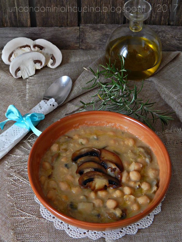 Ecco allora la mia zuppa di ceci e funghi! Due soli ingredienti che, messi insieme, restituiscono un gusto pazzesco. Mi ritrovo a dire, ancora una volta, che anche in cucina la semplicità è la miglior cosa!!! :-)))