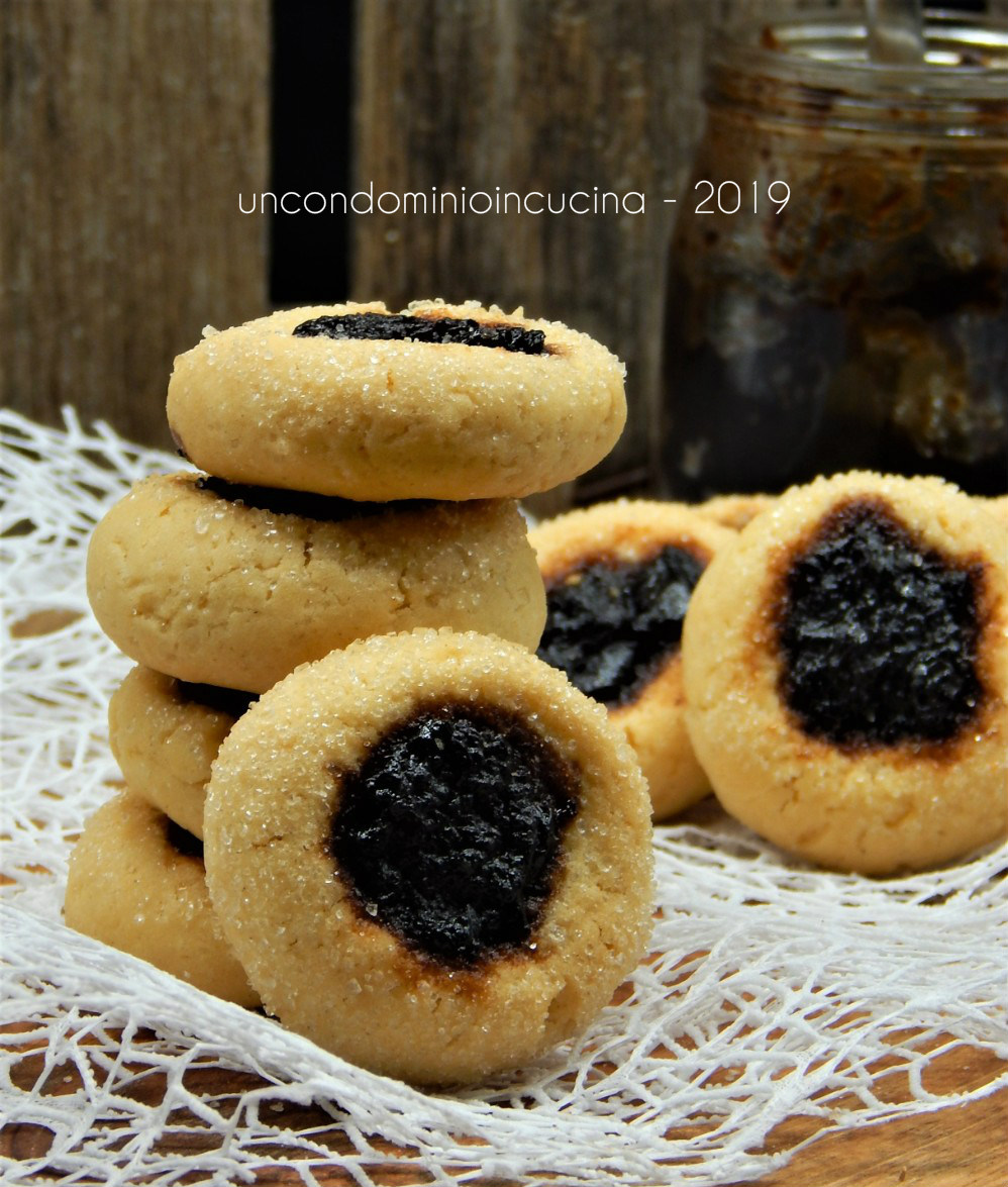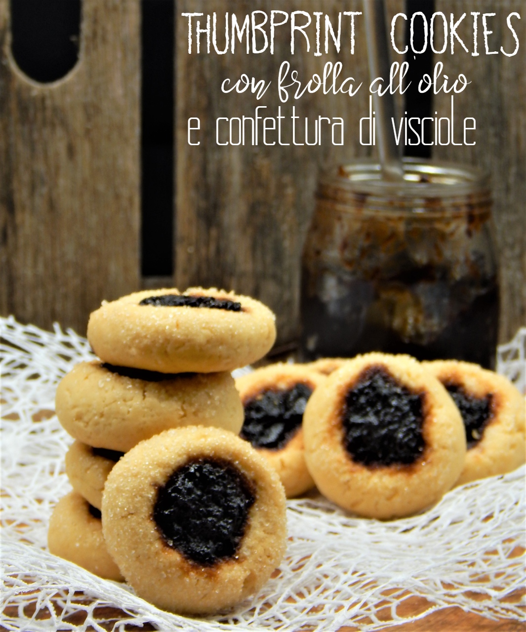 Thumbprint cookies. Frollini semintegrali all’olio e confettura di visciole