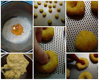 Terminato tutto l’impasto, imprimere al centro di ogni pallina il pollice in modo da creare un incavo in cui disporre la farcitura (con sac à poche per un lavoro più preciso e pulito).