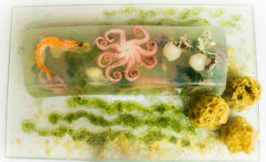 Leggi Tutto...Acquarius: piccolo mare in aspic, spugne alle alici e gocce di zenzero